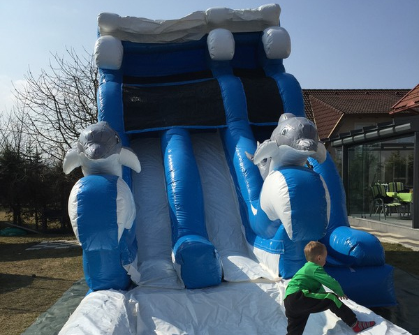 Perfekt für heiße Sommertage! Unsere große Wasserrutsche sorgt für eine erfrischende Abkühlung und jede Menge Rutschspaß.